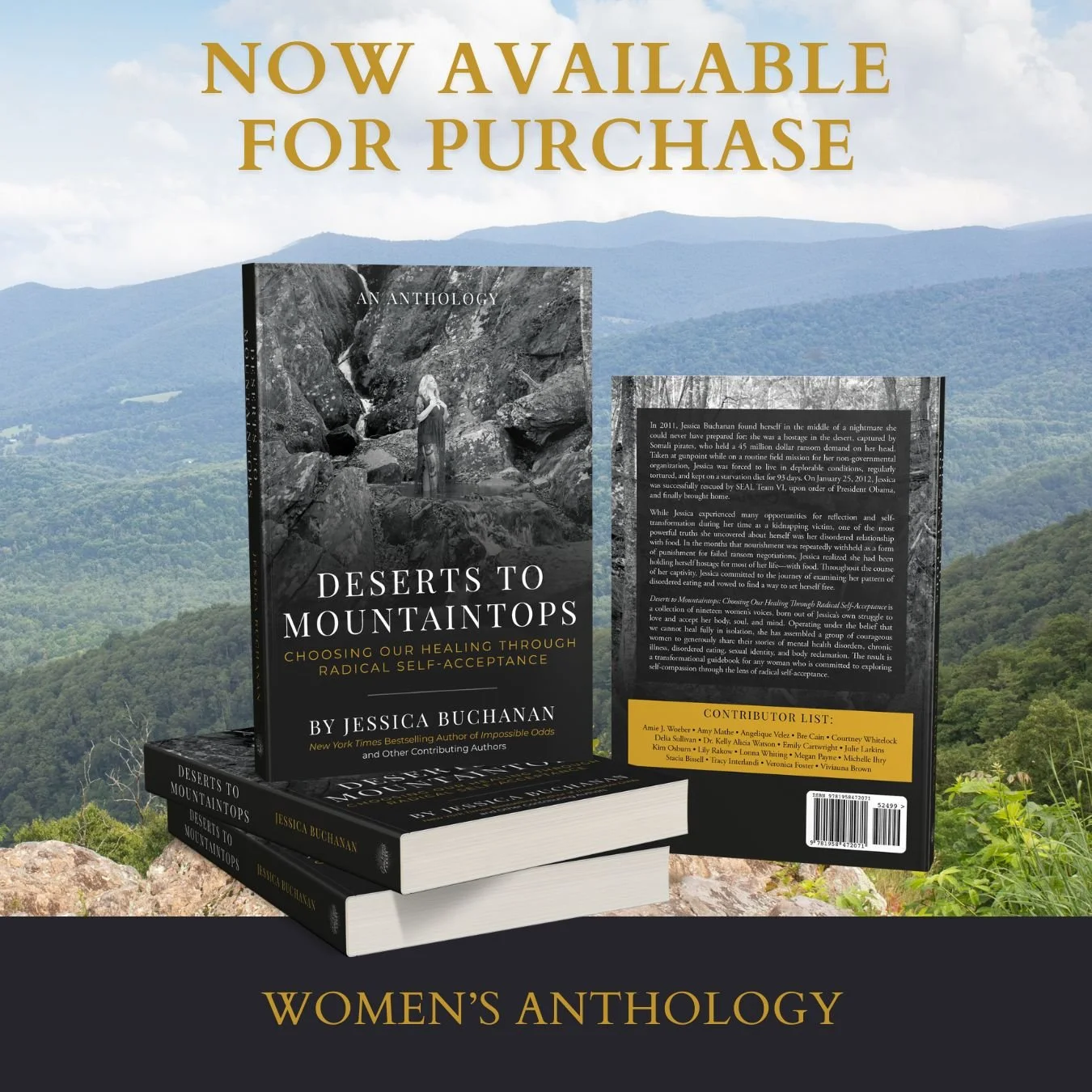 The book chronicles 20 women's voices and their unique journey from the desert of self-abandonment to the mountaintop of self-love and radical acceptance. Each chapter focuses on one woman’s specific story, recounting how she has chosen herself by prioritizing her body, mind, and spirit healing.